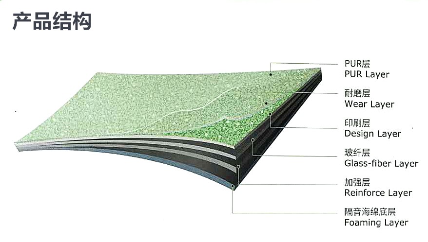 产品性能:高厚度纯PVC耐磨层,耐磨耐用,使用寿命长,高回弹泡沫背衬层回弹力优异,高密度玻璃纤维稳定层可避免热膨胀和冷收缩。特殊表面UV处理工艺易于清洗,无需蜡处理,色彩可塑性很强。不含任何重金属材料,不含甲醛,不辐射对人体健康不会造成任何危害,非常环保。