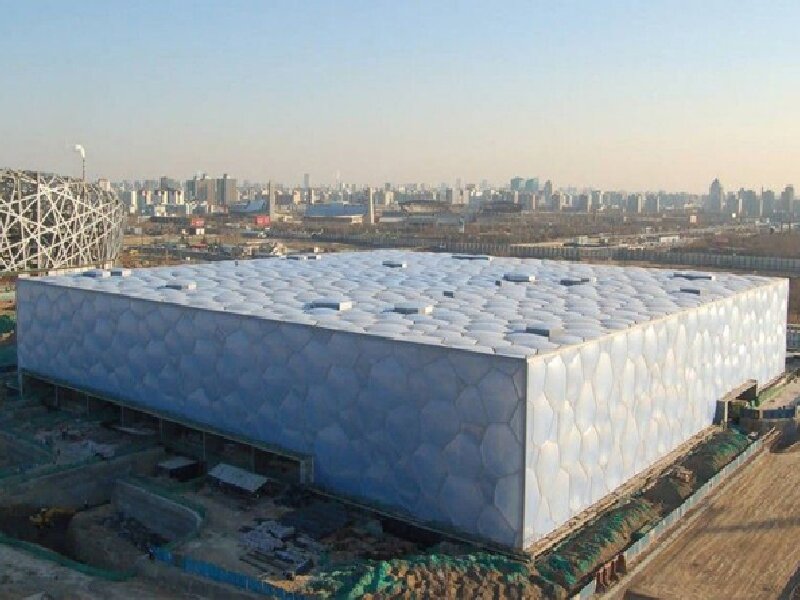 北京水立方总建筑面积达 65000—80000 平方米,涵盖比赛大厅、热身池、多功能大厅及嬉水乐园等多元空间,地面材料面临三大核心挑战: